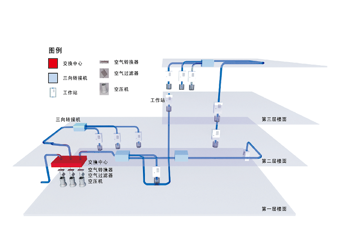根據(jù)客戶的局域物流需求和應用場景構(gòu)架,將分布于不同區(qū)域的工作點用專用管道連接起來,構(gòu)成一個封閉的傳送傳送網(wǎng)絡。