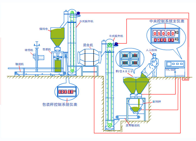 1、多物料:該系統(tǒng)按照規(guī)定的重量配比,自動完成2-10種物料的配料;