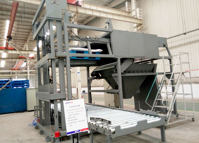 一種自動碎料、破袋、卸料、除塵的卸料裝置。應(yīng)用于25/50kg垛盤包裝的料袋卸料。包括鋼結(jié)構(gòu)支架、垛盤輸送機、垛盤提升機、碎料振打裝置、料袋抓取裝置、圓盤刀破袋裝置、料倉集料裝置、除塵罩、棄袋回收槽、物料輸送裝置。