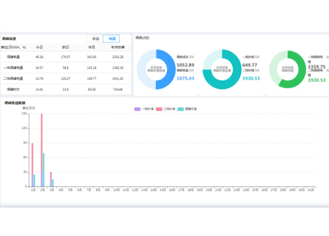 調(diào)峰收益報表:包括日報表、月報表、年報表及實時調(diào)峰數(shù)據(jù)報表,將調(diào)峰收益以報表及曲線的形式展示出來,避免了人工統(tǒng)計容易出錯的問題。