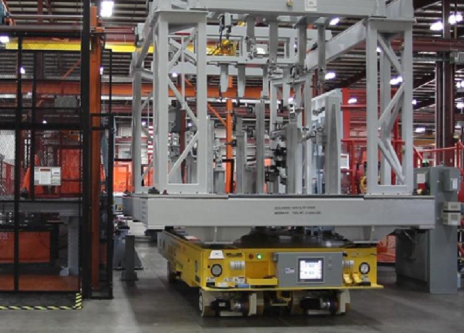 大噸位背負(fù)式AGV,適用于搬運大型構(gòu)件或重型產(chǎn)品設(shè)備等,物料可以直接在AGV上進(jìn)行搬運。